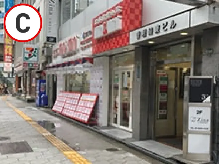 ③阪神百貨店前に着いたら、左折し阪神梅田駅東口改札方面(B)へ直進します。
