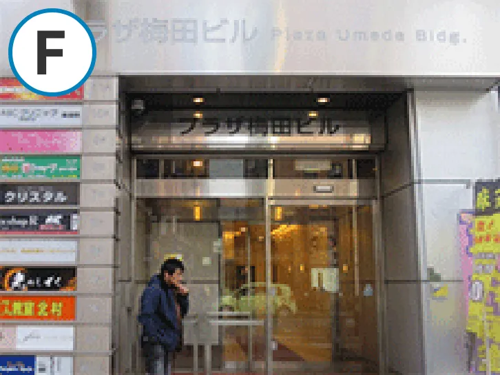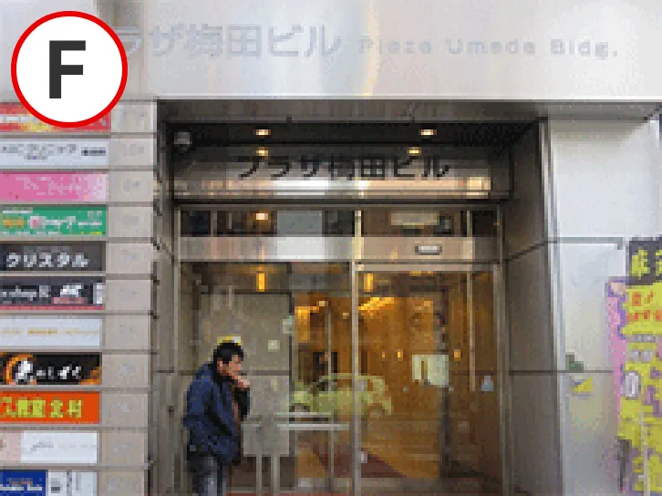 「プラザ梅田ビル」と表示された入口があります。