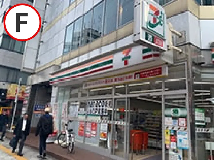 セブンイレブンを正面にし、左横に「プラザ梅田ビル」と表示された入口があります。