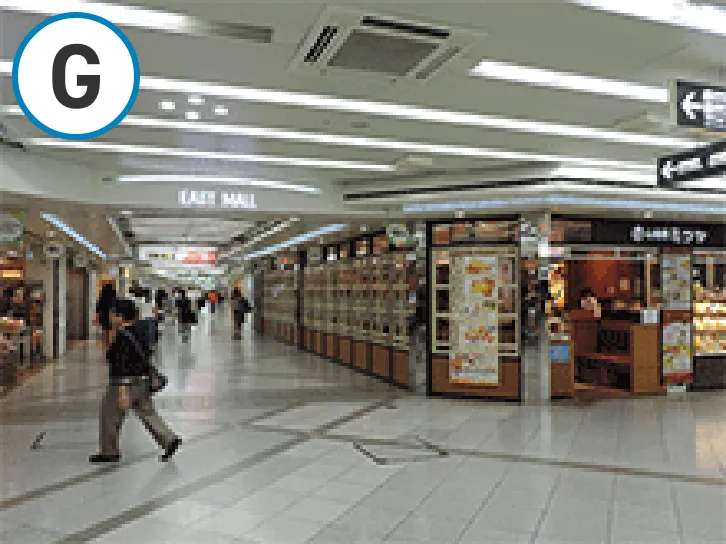 ①中央改札を出て南(大丸方面)へ向かいます。小さなエスカレーターを下ります。