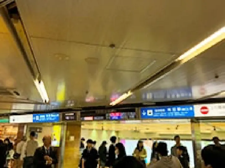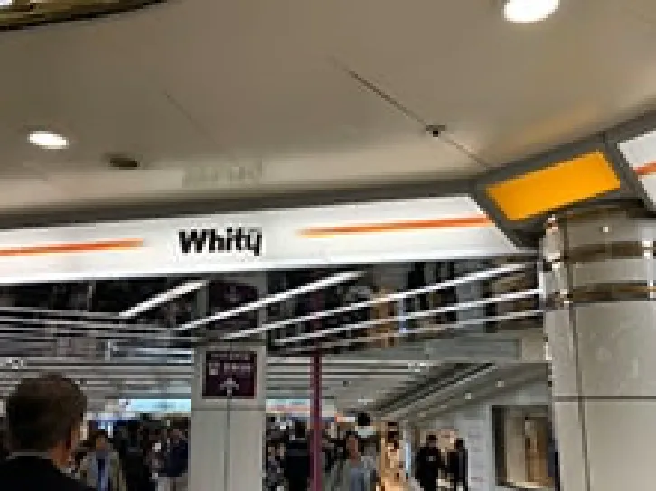 ①阪神梅田駅東口改札の踊り場の向かいにあるホワイティ梅田を目指します。