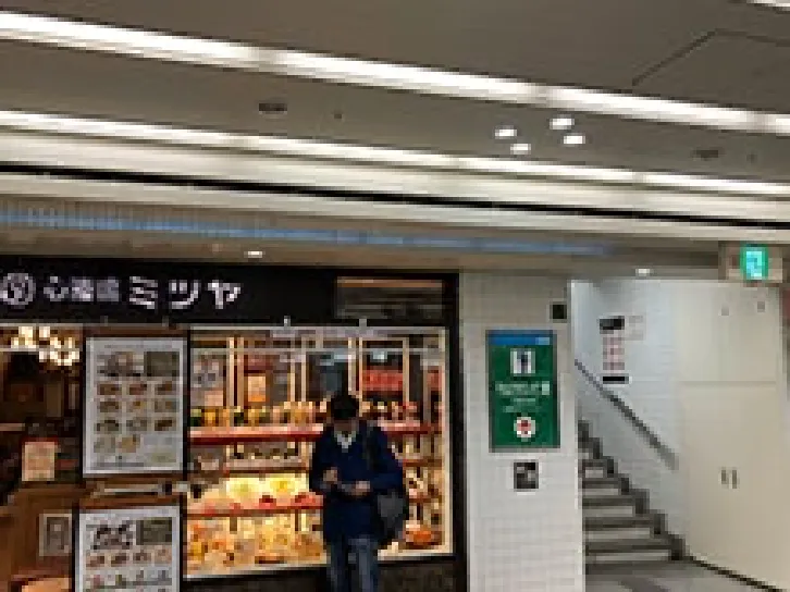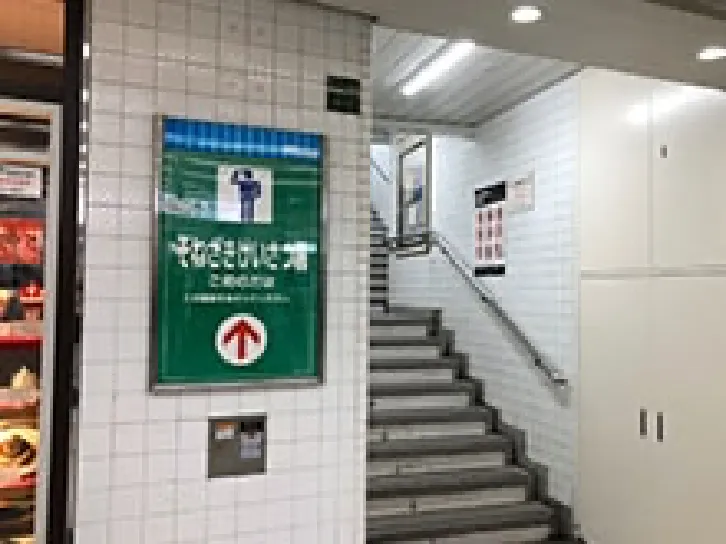 ③谷町線東梅田駅手前にある喫茶店ミツヤが目印!右手に曽根崎警察へ出る出口階段が!