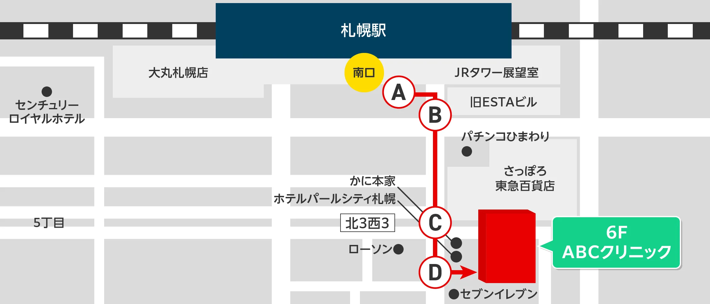 JR札幌駅 徒歩6分 JR札幌駅南口より徒歩約6分、さっぽろ東急百貨店の近くです。