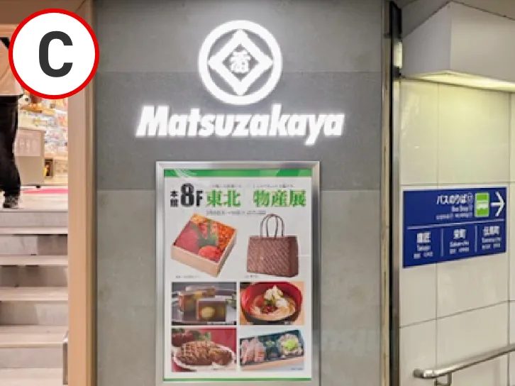 • 出口Gから地上に出ます。そのまま松坂屋を左手にして道なりに直進します。