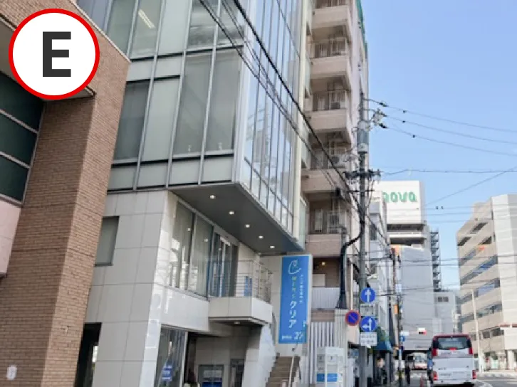 • 信号を越え直進すると左手に見えるガラス張りの白いビルが当院です。