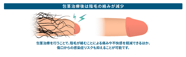 治療により亀頭が常に露出するため、恥垢や雑菌が溜まりにくくなり、包皮炎や亀頭炎などの炎症や、尿道炎などの感染症を予防しやすくなります。