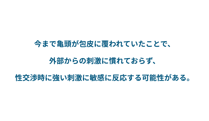 亀頭が包皮に覆われているため外部からの刺激に慣れておらず、性交渉時に急な強い刺激に敏感に反応しやすいです。
