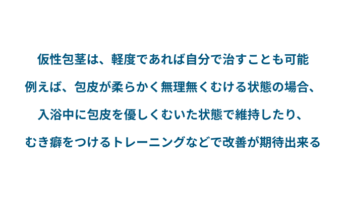 仮性包茎は、軽度であれば自分で治すことが可能な場合もあります。