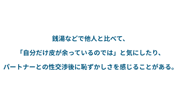 温泉や銭湯などで他人と比べて「自分だけ皮が余っているのでは」と気にしたり、パートナーとの性交渉時に恥ずかしさを感じることがあります。
