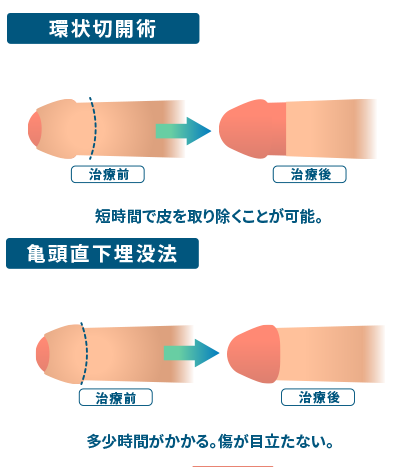現在では環状切開術や亀頭直下埋没法など、患者様の状態に応じた様々な治療が用意されており、改善が期待できます。