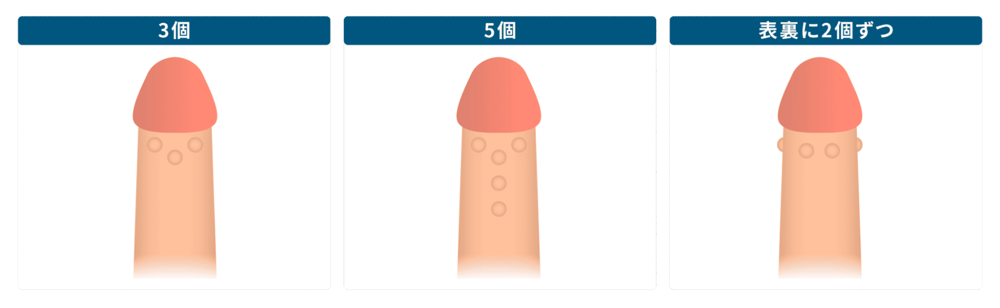 患者様の希望やペニスの状態に合わせて個数を選択できますが、一般的には3〜5個の挿入が適しているとされています。 しかし、多く入れすぎると刺激が強くなりすぎたり、違和感や見た目のバランスが悪くなったりする場合があるため、医師と相談しながら決めるようにしてください。