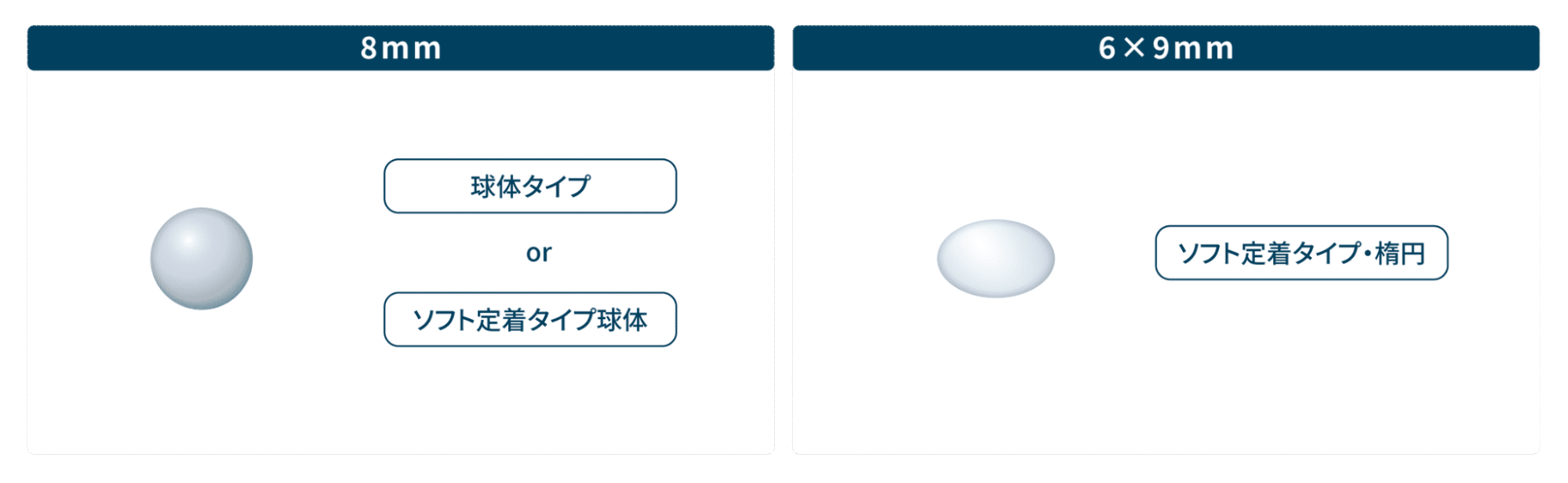 ABCクリニックでは、8mmのシリコンボール、6*9のシリコンボール、シリコンリング(指輪タイプ)、シリコンリング(数珠タイプ)から自由に選んでいただくことができます。 形状や大きさによって見た目や装着感が変わるため、ご希望や目的に合わせて最適なタイプをお選びいただけるよう、カウンセリング時にしっかりご案内いたします。